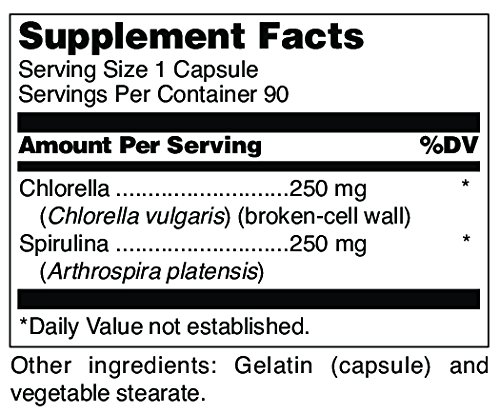 Freeze-dried chlorella (whole cell) and spirulina from blue-green algae to maintain potency. Used as a phytonutrient aid in support of proper detoxification and immune function.