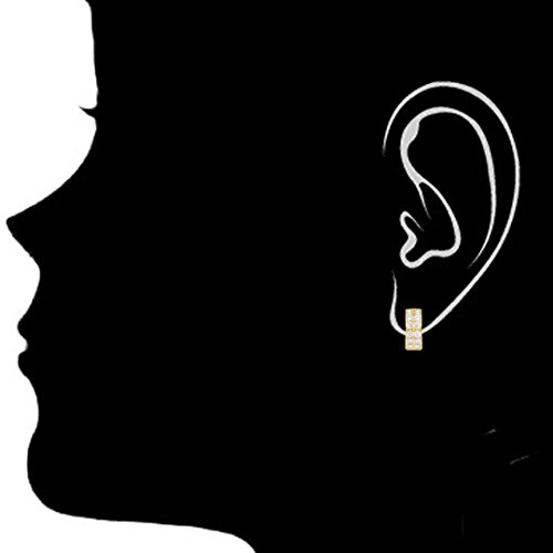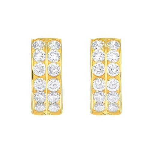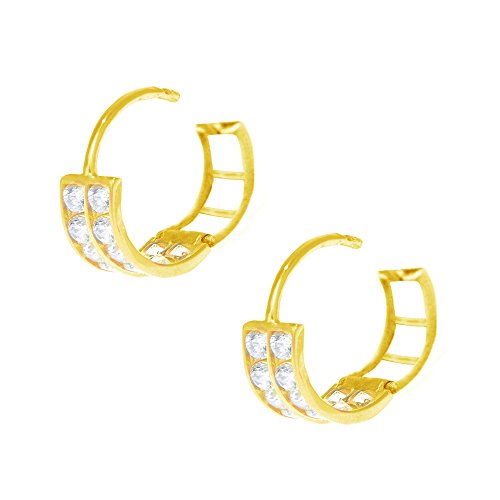 -. Title : 14K Real Yellow Gold Hie Two Rows Cubic Zirconia Cubic Zirconia 10mm Hoop Hoops Earrings