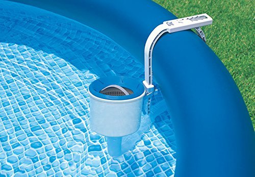 -. Brand : Intex -. Department : unisex-adult -. EAN : 0789610241620 -. Feature : The Intex Deluxe Surface Skimmer requires an Intex filter pump with a 800 gph minimum flow rate / Works in conjunction with your filter pump for easy automatic surface skimming / Easily mounts to your Easy Set or Metal pool side with included adjustable brackets / Strainer basket is easy to clean and removes in an instant / Catches floating debris and leaves before they can find the bottom of your pool -. Label : intex -. Manufacturer : intex -. MPN : 28000E -. PackageQuantity : 1 -. PartNumber : 28000E -. ProductGroup : Lawn & Patio -. ProductTypeName : OUTDOOR_LIVING -. Publisher : intex -. Studio : intex -. Title : Above Ground Pool Deluxe Wall Mount Automatic Skimmer -. UPC : 789610241620