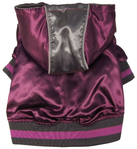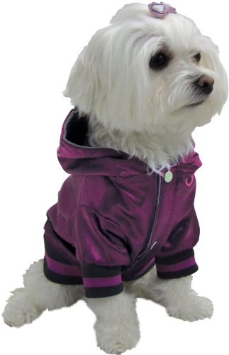 -. Feature : Metallic hoodie is fall and winter 2011 small dog clothing collection / Shiny metallic purple hoodle with reflective accents / Small size recommended for smaller-sized dogs such as yorkshire terriers, chihuahuas, mini pinschers / This product weight is 0.3-pound / Measures 1-inch length by 9-inch width by 11-1/2-inch height