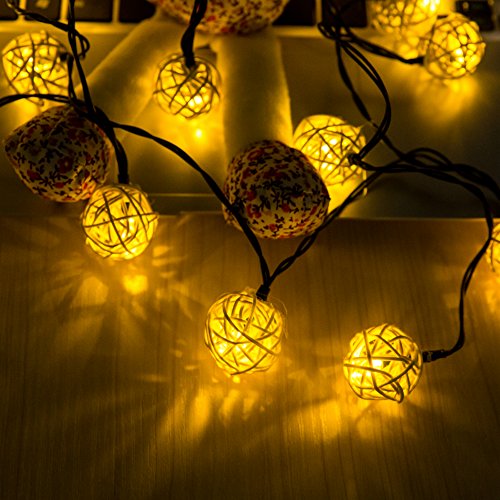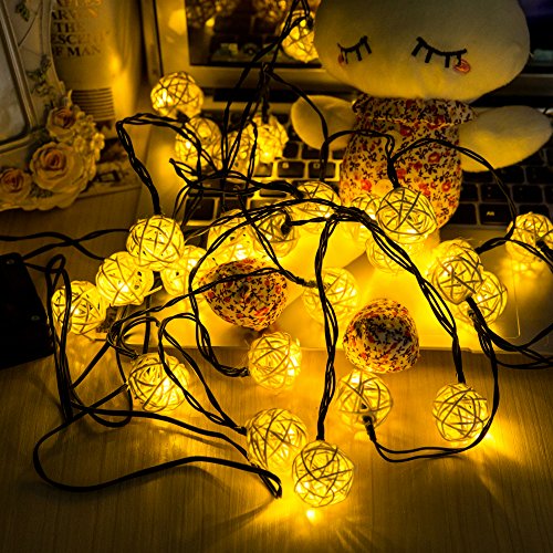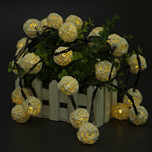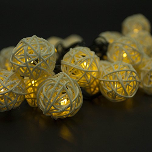 Lightess Christmas Solar String Lights Outdoor Wooden Rattan Ball Ambiance Lighting for Landscape Patio Garden Bedroom Camping Party Wedding (Warm White)
