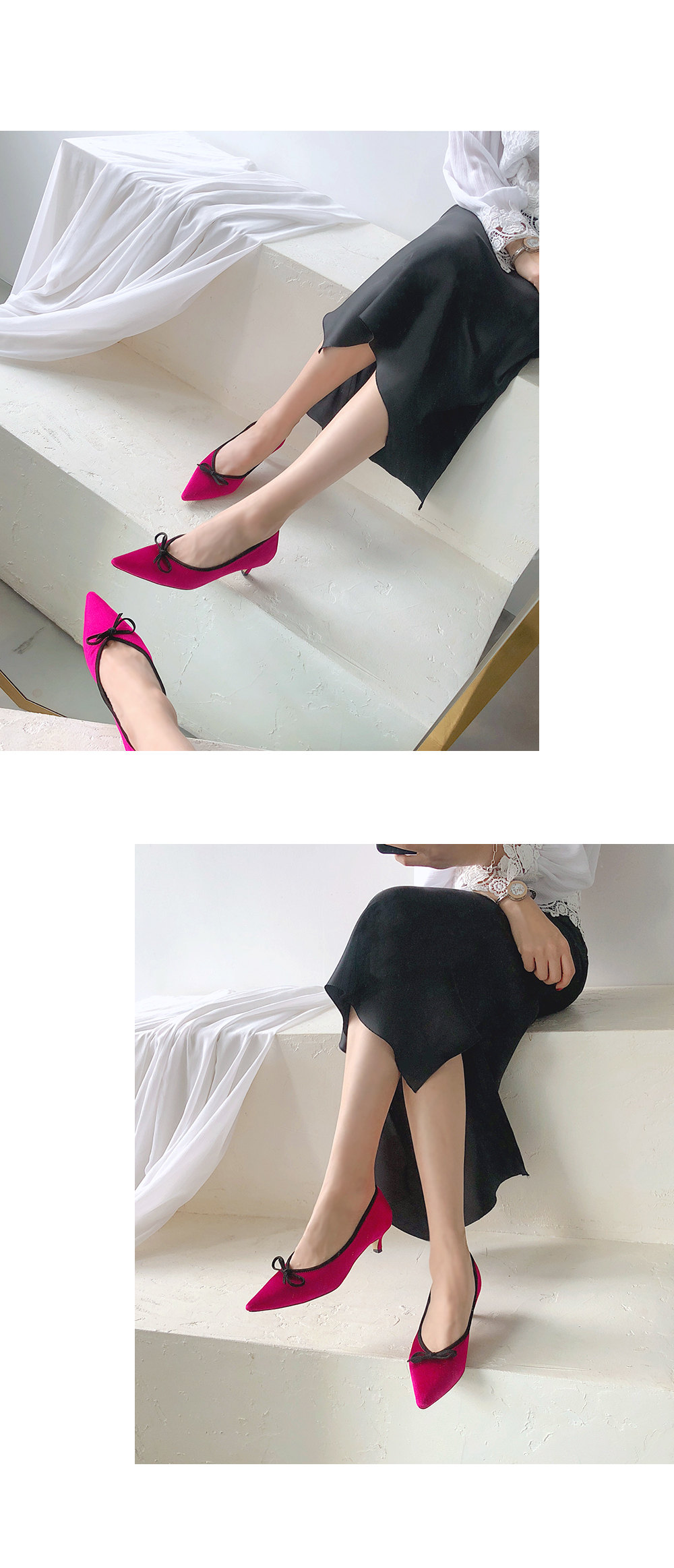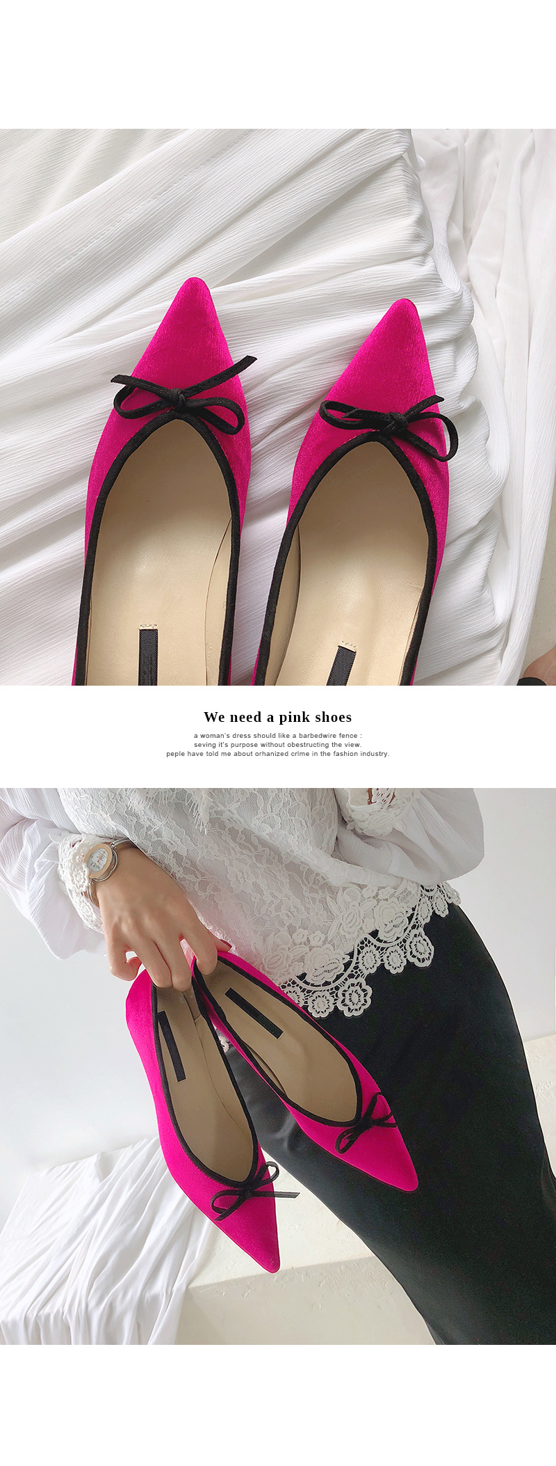 앞 코 장식된 리본이 여성미를 부각시켜주고 강렬한 색감으로 데일리룩의 포인트가 되어줍니다.