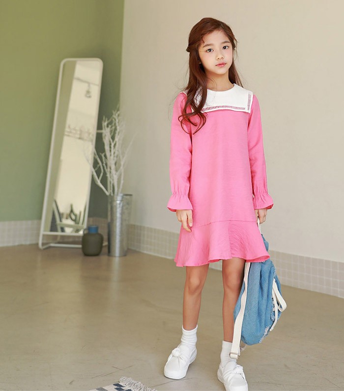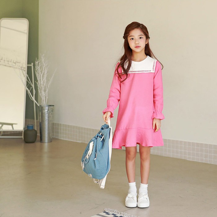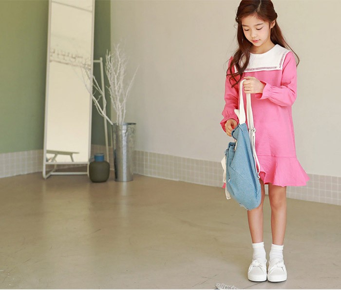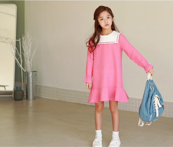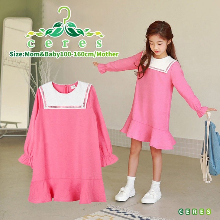 【製品仕様】■商品説明・ビビットピンクが女の子らしさUP!・やや光沢のあるやわらか素材・春らしい薄手のワンピース・大きめの襟がアクセント!■カラー:ピンク■材質:コットン95%、ポリエステル5%■サイズ(平置き採寸) 100cm: バスト:31cm 総丈:55cm 肩幅25.5cm 袖丈:36cm 袖口11.5cm 110cm: バスト:33cm 総丈:60cm 肩幅27.3cm 袖丈:39.5cm 袖口12.15cm 120cm: バスト:35cm 総丈:65cm 肩幅29.1cm 袖丈:43cm 袖口12.8cm 130cm: バスト:37cm 総丈:70cm 肩幅30.9cm 袖丈:46.5cm 袖口13.45cm 140cm: バスト:39cm 総丈:75cm 肩幅32.7cm 袖丈:50cm 袖口14.1cm 150cm: バスト:41cm 総丈:80cm 肩幅34.5cm 袖丈:53.5cm 袖口14.75cm 160cm: バスト:43cm 総丈:85cm 肩幅36.3cm 袖丈:57cm 袖口15.4cm