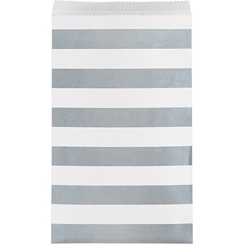 Creative Converting 315211 180-Count Paper Striped, Silver, Treat Bags, Silver Stripes