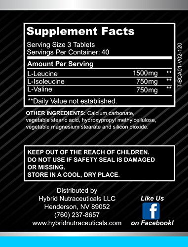 Non GMO formula, 3000mg Tablets; Pure branched chain amino acids; 40 Servings, Made in the USA in a cGMP certified facility