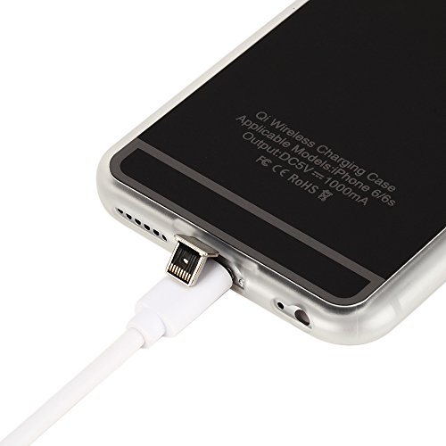 -. Feature : Wireless charging kit for iPhone 6 / iPhone 6S (L*W = 5.44'' × 2.64'' × 0.27''), including Qi wireless charging receiver case and Qi wireless charging pad. Fast charge your iPhone quickly at 1A. / Soft TPU case with TI chipset integrated, enable your iPhone to wireless charging without plug in a cord. Full-body protection, built-in translucent blue LED indicates wireless charging status. / Flexible lightning connector, can be unpled to allow wired charging and syncing your iPhone without removing it from the case, Easy access to wireless charging and wired charging. / UFO design clear Acrylic wireless charger will turns on blue breathing LED light when charging. Non-slip silicone rubber ring keeps your phone charging in place. Built-in over-voltage, under-voltage and short circuit protection, never overcharge your phone. / Can you wireless charge your device from far away? NO, YOU CAN'T. This device just makes it simple & convenient for you to charge your phone without using a cable. Set your phone on the base and you'll hear a beep letting you know it's charging.