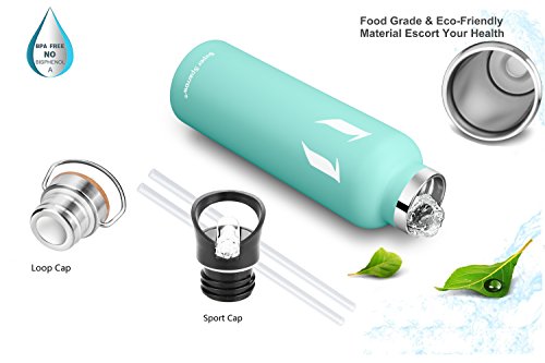 ★ 2 INTERCHANGEABLE CAPS - (1) sport Cap effortlessly delivers a high flow rate that makes it easy to drink from your bottle without removing the cap , (2) loop Cap with super secure carabineer for securing to bags for outdoor use, for the most attractive!