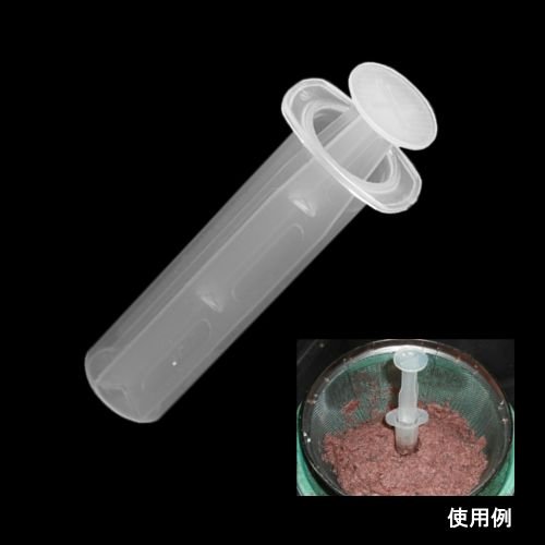-. Feature : 溶かしたアミエビに差し込むだけで、一瞬にでカゴ入れ。手も汚しません。シンプルな作りでメンテナンスは簡単、故障もほとんどありません。押し出し棒は抵抗無く動きます。サイズは、L、M、Sの3種類。いろんなタイプのマキエカゴに対応できます。 / サイズ:S(アミカゴ7号用)外径約22mm 内径20mm シリンダー高さ103mm 25cc 重量11g / M(アミカゴ15号用)外径約26mm 内径24mm シリンダー高さ112mm 40cc 重量15g / L(アミカゴ30号用)外径約31mm 内径29mm シリンダー高さ119mm 63cc 重量20g / 素材:ポリエチレン樹脂