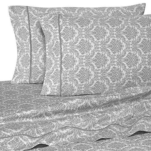 Rajlinen 400 Thread Count 100% Cotton Sheet Set Jacquard Printed Queen 15" Deep In Silver