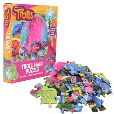 -. Feature : Dreamworks Trolls 48-piece Puzzle features synthetic troll hair! / Puzzle size: 10.3 x 9.1"