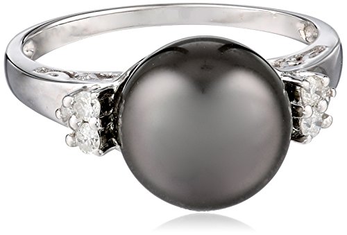 -. Title : 14k White Gold Tahitian Cultured Black Pearl (9-9.5 mm) and Diamond (1/10cttw, J-K Color, I3 Clarity) Ring, Size 7