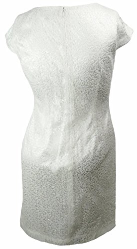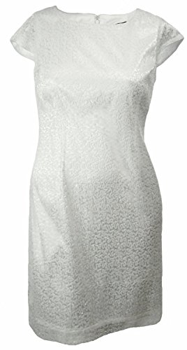 The Sean dress by Tahari features full satin lining, concealed back zipper, hook & eye closure, scoop neck, satin trim, short sleeves, knee length, all-over white sequin detailing, and shift silhouette.