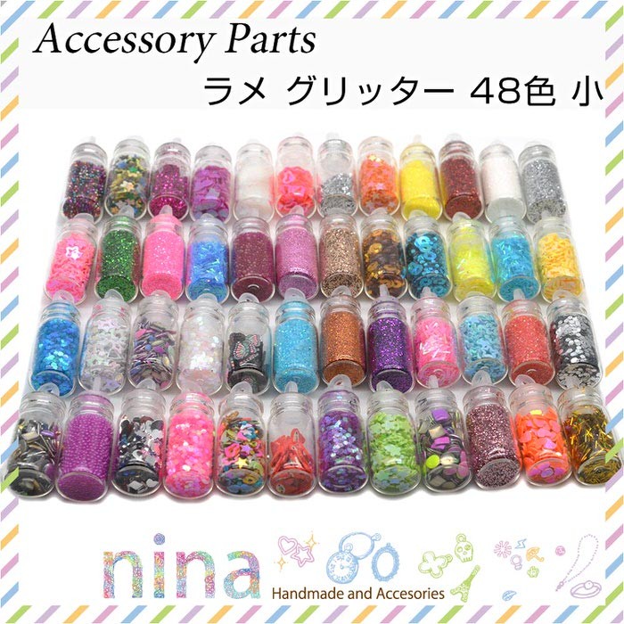 ■生産国:中国ラメ ラメグリッター ホログラム 手作り ハンドメイド UVレジン 手芸 レジン レジンパーツ 材料 パーツ レジン液 ネイルパーツ ミックス 素材 メイク デコパージュ ジェルネイル クラフト キラキラ ラメ グリッター 48色 小 ラメ グリッター 48色 小 ラメでキラキラ手作りレジンアクセサリー!
