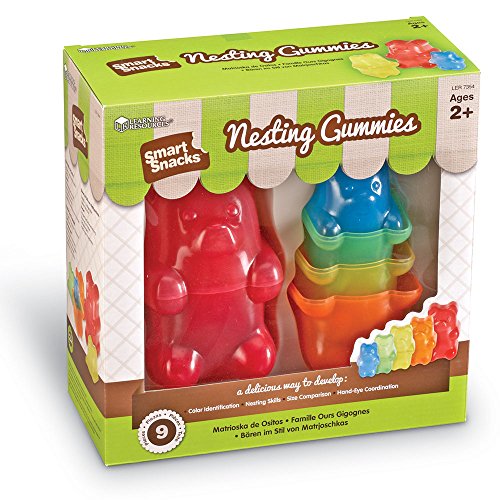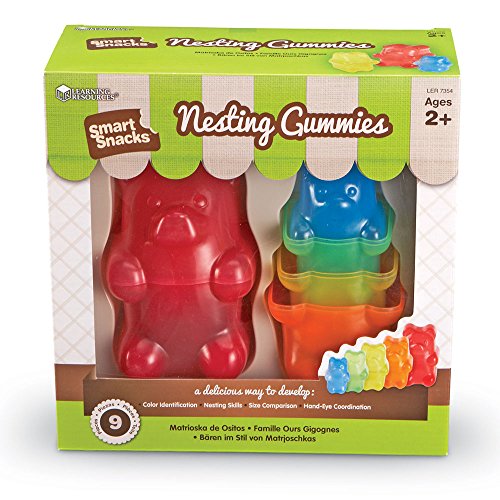 Start nesting with this bear necessity for early learning! Classic nesting dolls have been transformed into vibrant bears in 5 different sizes and colors. Friendly bears easily nest for a fun way to build size and color recognition, and fine motor (nesting) skills. Largest bear measures 61/2"H. Toddlers+, Ages 2+.Set of 9