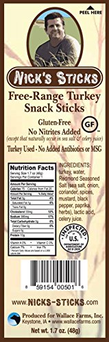 -. Title : Nick's Sticks Free Range Turkey Snack Sticks - Gluten Free - No Antibiotics or Hormones (6 packages of 2 sticks)