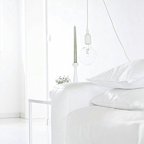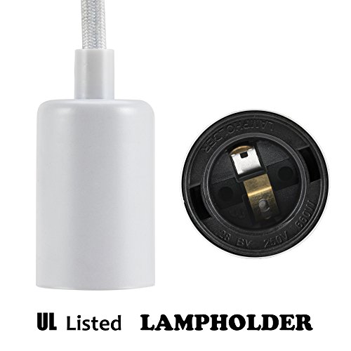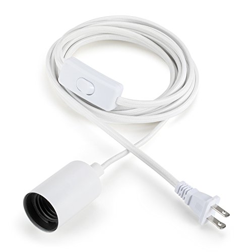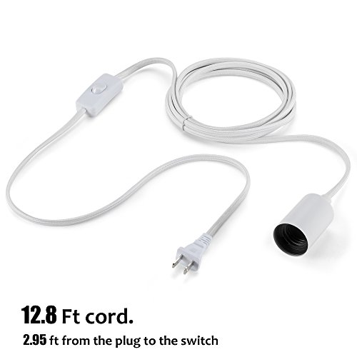ASOKO Vintage Single Pendant Light, UL listed Plug-in Pendant Light Socket Cord, White Flished Metal shell, 13ft Woven Fabric Cord, E26/E27 Scoket, In-line ON/OFF Switch, DIY Projects (White)