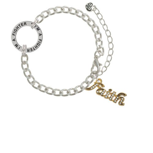 -. Binding : Jewelry -. Brand : Delight Jewelry -. Department : womens -. Feature : Script "Faith" with Clear Crystals I'm A Fighter Affirmation Link Bracelet. Plating Choice: or Gold Tone. / Charm size is approx. 1.06 x 0.51 x 0.1 inches (HxWxD) including loop. / Diamond-Cut Curb Chain Links are approx. 7.4 x 5 mm (HxW). Bracelet is 6.75 - 8.5 inches adjustable. Lobster Claw Clasp. / Link is approx. 1 inch in diameter. / This inspirational piece of jewelry is very meaningful. Its circular shape is symbolic for endless belief in the message that is imP.R.Inted around the ring. These are motivational or sentimental messages to the wearer. Makes a great gift! -. Label : Delight and Co. -. Manufacturer : Delight and Co. -. ProductGroup : Jewelry -. ProductTypeName : FASHIONNECKLACEBRACELETANKLET -. Publisher : Delight and Co. -. Studio : Delight and Co. -. Title : Crystal Script Faith I'm A Fighter Affirmation Link Bracelet