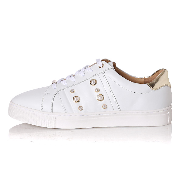 사이드부분의 여성스러운 진주장식이 포인트인 기본형 스니커즈. 경량 고무몰드와, 시스공법을 사용하여 가볍고, 보행시 발의 움직임에 따라 부드럽게 움직임, 복원력이 우수한 8mm 쿠션 인솔을 사용하여 발의 피로를 덜어 줌