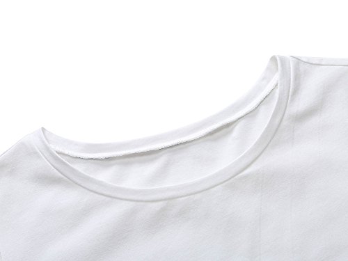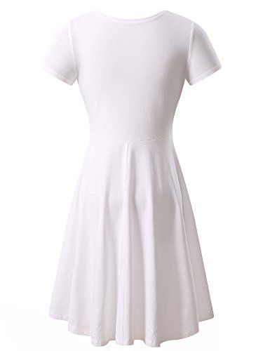 Women Short Sleeve Round Neck Summer Casual Flared Midi Dress Large White