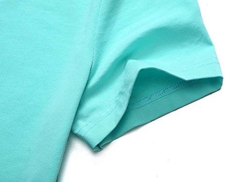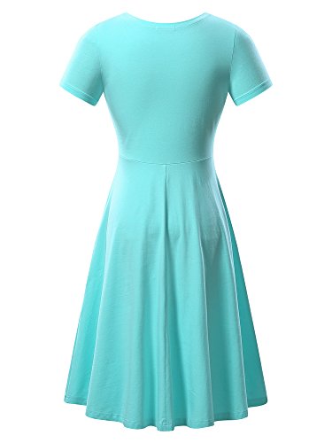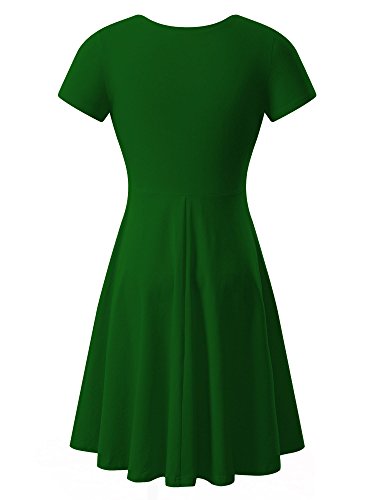 Women Short Sleeve Round Neck Summer Casual Flared Midi Dress (Medium, Green)