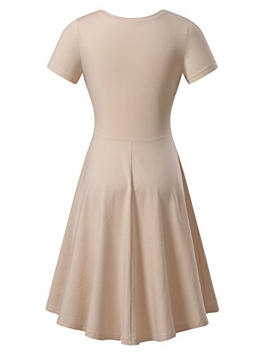 Women Short Sleeve Round Neck Summer Casual Flared Midi Dress (Medium, Nude)