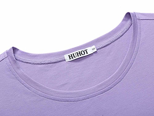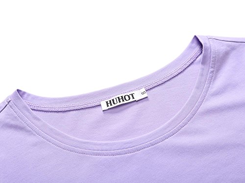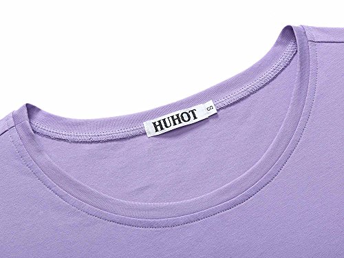 Women Short Sleeve Round Neck Summer Casual Flared Midi Dress (Medium, Purple 2)