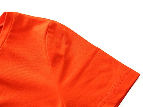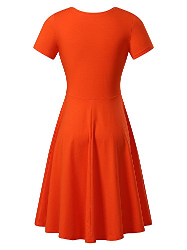 Women Short Sleeve Round Neck Summer Casual Flared Midi Dress (Medium, Orange)