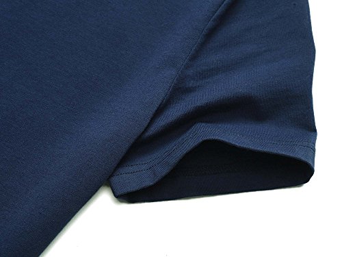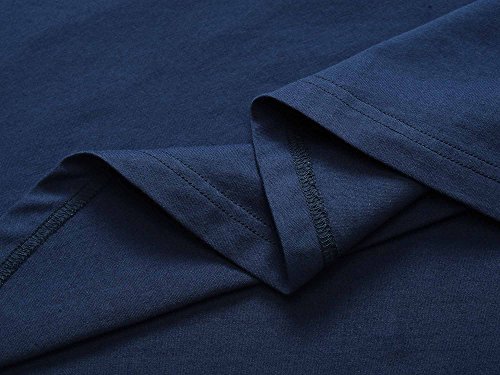 Women Short Sleeve Round Neck Summer Casual Flared Midi Dress (Large, Navy)