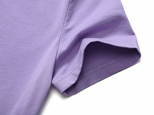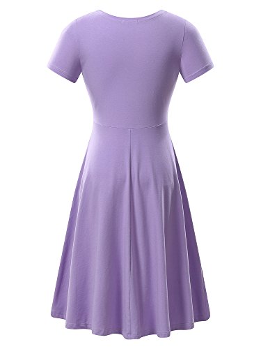 Women Short Sleeve Round Neck Summer Casual Flared Midi Dress (Medium, Purple)
