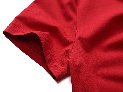 HUHOT Red Dress, Short Sleeve Round Neck Casual Flared Midi Dress XX-Large Wine