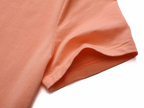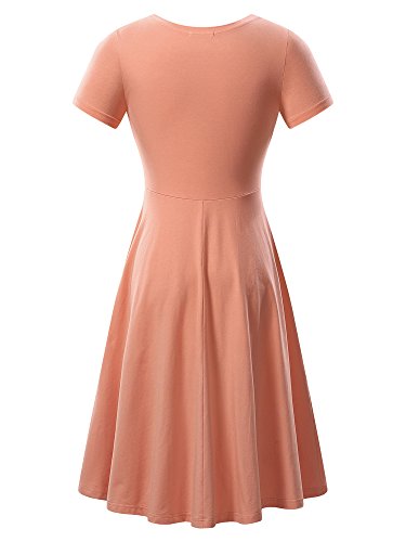 Women Short Sleeve Round Neck Summer Casual Flared Midi Dress (Medium, Light Orange)