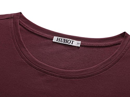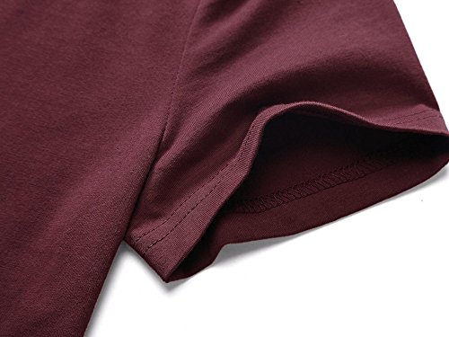 HUHOT T Shirt Dress,Women Short Sleeve Round Neck Solid Casual Flared Midi Dress Small Wine