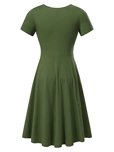 Women Short Sleeve Round Neck Summer Casual Flared Midi Dress (Medium, Moss Green)