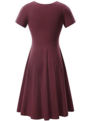 Women Short Sleeve Round Neck Summer Casual Flared Midi Dress Medium Wine