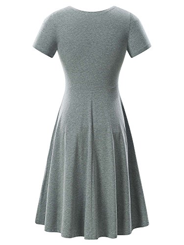Women Short Sleeve Round Neck Summer Casual Flared Midi Dress (Medium, Dark Grey)