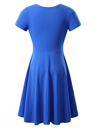 Women Short Sleeve Round Neck Summer Casual Flared Midi Dress (XX-Large, Blue)