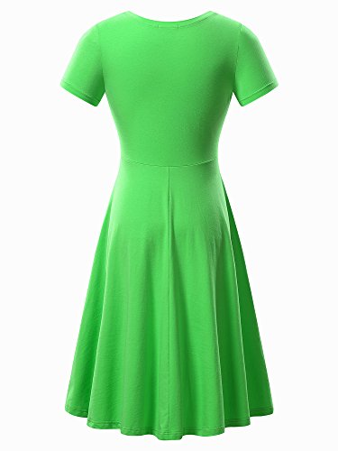 Women Short Sleeve Round Neck Summer Casual Flared Midi Dress (Medium, Grass green)