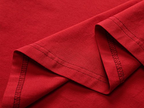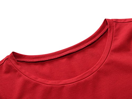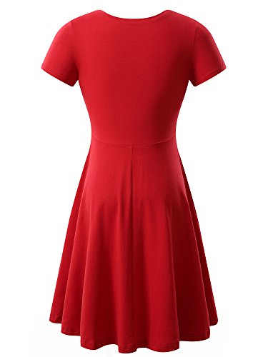 HUHOT Party Dress,Womens Basic Short Sleeve Round Neck Solid Casual Flared Midi Dress Medium Deep Red