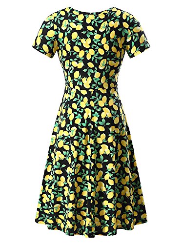Women Short Sleeve Round Neck Summer Casual Flared Midi Dress (X-Large, Floral-34)
