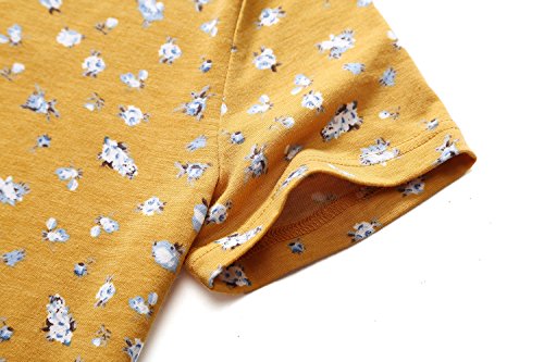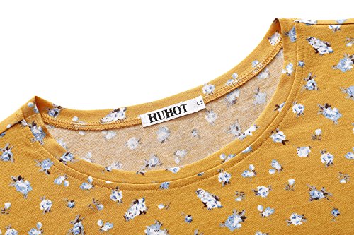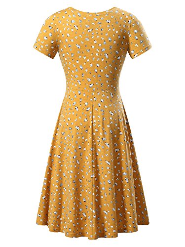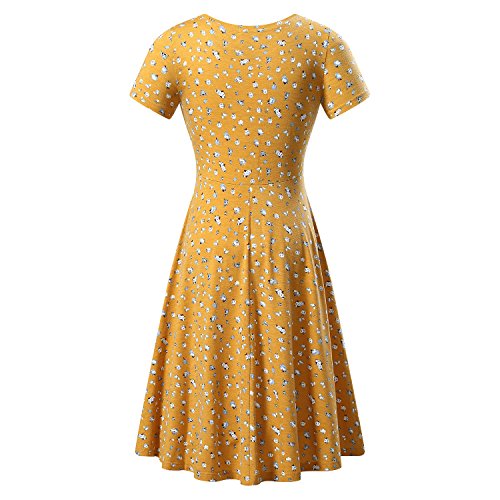 Yellow Dresses,Women Short Sleeve Round Neck Summer Casual Flared Midi Dress (XX-Large, Yellow)