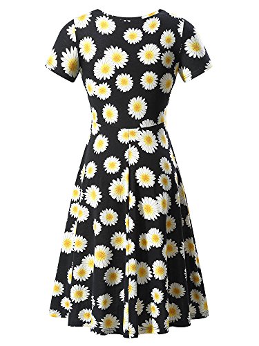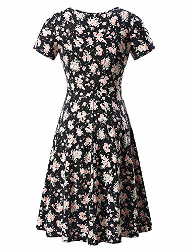 Women Short Sleeve Round Neck Summer Casual Flared Midi Dress (Small, Floral-29)
