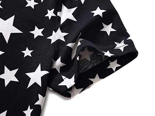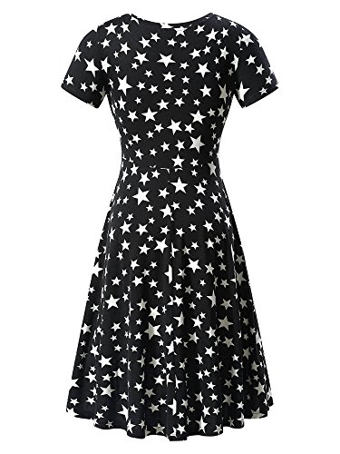 Women Short Sleeve Round Neck Summer Casual Flared Midi Dress (XX-Large, Black)
