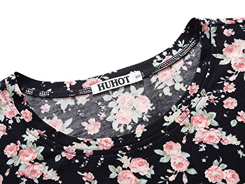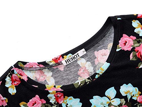 Homecoming Dress,Women Short Sleeve Round Neck Casual Flared Midi Dress (XX-Large, Floral-24)