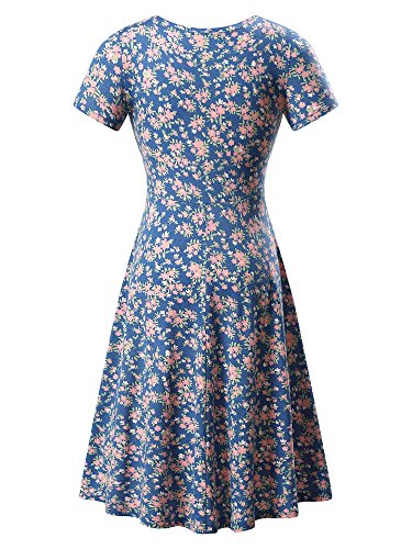 Women Short Sleeve Round Neck Summer Casual Flared Midi Dress (Medium, Floral-24)