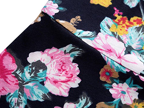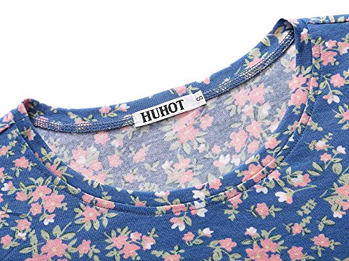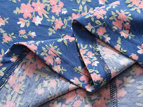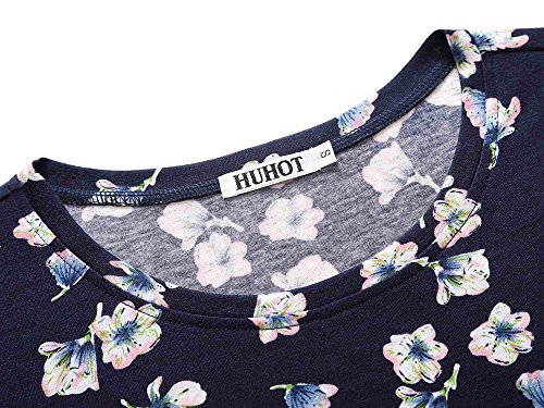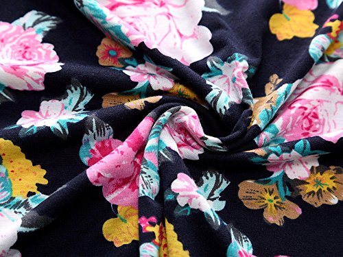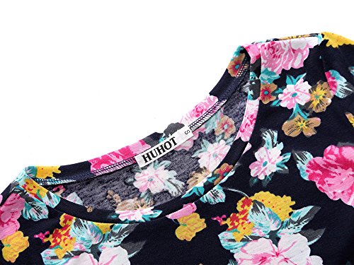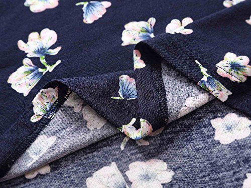 Women Short Sleeve Round Neck Summer Casual Flared Midi Dress (L, Navy Peony)