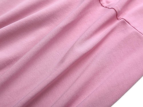 Women Short Sleeve Round Neck Summer Casual Flared Midi Dress (X-Large, Pink)