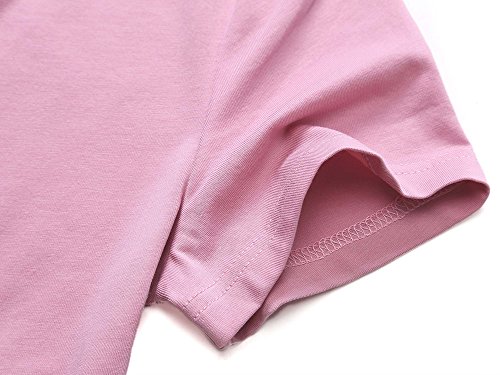 Women Short Sleeve Round Neck Summer Casual Flared Midi Dress (Medium, Pink)