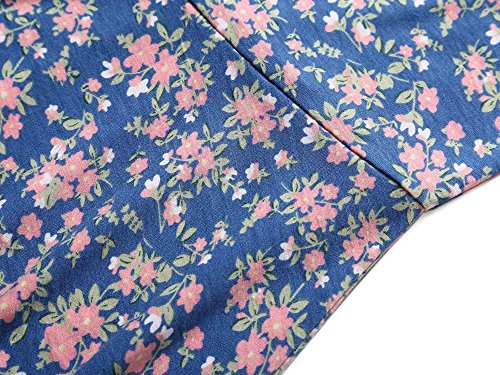 Women Short Sleeve Round Neck Summer Casual Flared Midi Dress (S, Navy Peony)