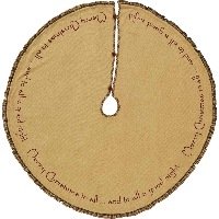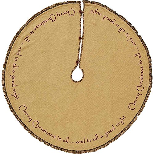 Natural Burlap Santa Tree Skirt with Red and Green Plaid Ruffle with printed "Merry Christmas" Festive Edges - 48 Diameter Inches - Holiday Decoration for Home or for Gift Giving