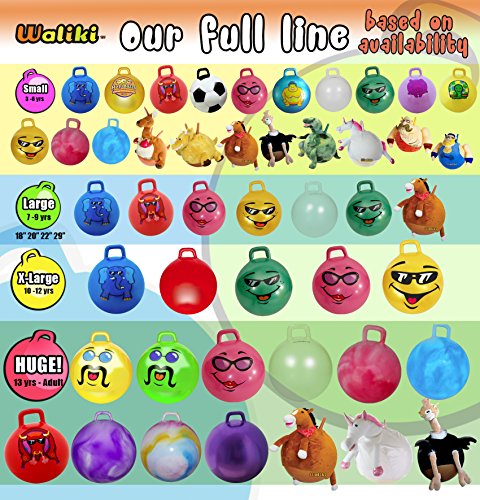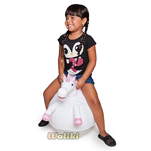 [Description] EASY TO INFLATE: Double-action hand pump is included ($5.95 value) with your Hopper Ball. Easily inflate in 5 minutes PERFECT SIZE: 18``/45CM is the correct size for ages 3-6. Waliki``s Plush Cover Hopping Ball is available in dinosaur_ ostrich and unicorn styles. SAFE: The Jumping Ball conforms to ASTM-F963 safety standard_ is free of banned phthalates_ and most importantly_ teaches balance and coordination_ making healthy exercise fun! Help them burn out extra energy WE CAN READ YOUR MIND: Parents deserve fun too! Get an adult size Hippity Hop Ball for yourself! WALIKI TOYS_ 10+ YEARS EXPERIENCE: Since 2005_ smart parents trust the Waliki brand for the Sit and Bounce Ball_ the bouncy horse_ and epic bouncing toys that make EXERCISE FUN. Unlike other_ low quality generic brands on amazon_ Waliki has been featured on GMA_ the Wendy Williams Show_ We have a loyal social media following and quality product videos. Happy Jumping!